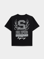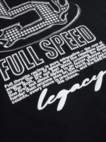 Stay ahead of the style game with our Jet black motorsport graphic tee. Made from comfy single jersey material, this tee is perfect for everyday wear.