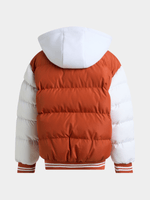 Stay warm and stylish in the Jet Rust Puffer Jacket. Crafted with padded material, this jacket is perfect for chilly days. Made with high-quality polyester for durability.