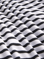 Introducing the Jet White/Black Striped T-shirt. Made from soft cotton, this tee is perfect for everyday wear. Classic black and white stripes add a stylish touch. With a comfortable fit and easy-care fabric, it's a must-have for any wardrobe. Returnable for your convenience.