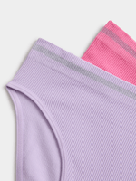 Get ready for ultimate comfort and style with our Jet Teen 2 Pack Pink Lilac Rib Seamless Bikini. Made with high-quality fabric that feels like a second skin, these bikinis feature seamless construction for a smooth fit.