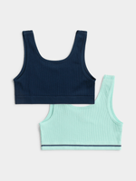 Stay comfortable all day in our Jet Aqua Navy Rib Seamless Crop Bra. This 2 pack boasts a seamless design for a smooth fit under any outfit. With a blend of breathability and support, it's the perfect addition to your wardrobe.