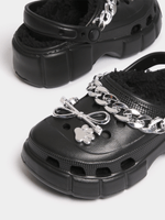 Introducing the Jet Black Clogs! Step up your style game with these trendy fur clogs. Made for comfort with a touch of flair, these clogs are perfect for everyday wear. Easy to slip on and off, they're a must-have addition to your shoe collection.