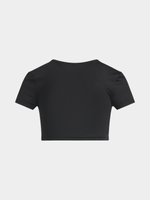Introducing our Jet Black Shrunken Top, crafted from comfortable Polyamide material. This trendy piece is perfect for any casual occasion, with a flattering fit and versatile style. Designed to keep you looking cool and feeling confident all day long. Make a statement with this must-have addition to your wardrobe.