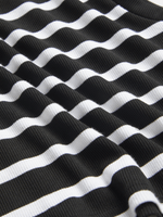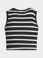 Meet your new go-to top for effortless style! The Jet Black and White Striped Rib Top features a trendy racerback design and is made from comfortable ribbed material. Perfect for layering or wearing on its own, this top is a versatile addition to any wardrobe.