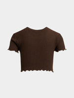 Stay ahead of the fashion game with our Jet brown crinkle graphic top. Crafted from comfortable knit material, this top is a must-have for any wardrobe.