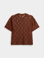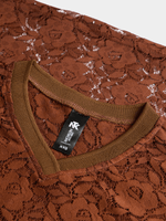 Introducing our Jet lace tee in classic brown. This oversized V-neck tee features delicate lace detailing for a stylish touch.