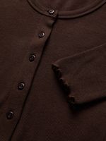 Stay on-trend with this Jet Rib Long Sleeve Button Through Top in a versatile brown hue. Made from comfortable ribbed material, this top is perfect for everyday wear.