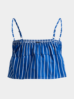 Get ready for a stylish upgrade with our Jet Dark Blue Stripe Front Tie Top. Made from comfortable cotton for everyday wear. Features a trendy front tie detail for a cute look.