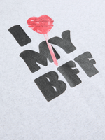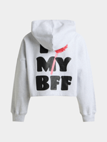 Stay cozy and stylish with the Jet grey BFF graphic hoody. Made of soft fleece material for maximum comfort. Show off your bestie pride with the cute graphic design.