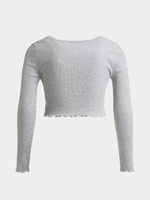 Stay cozy and stylish with our Jet ribbed long sleeve button-through top in classic grey. Made from soft ribbed fabric, this top is perfect for everyday wear.