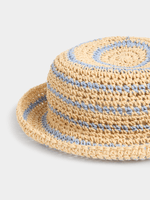 Stay cool and stylish with our natural stripe crochet bucket hat. Made from high-quality paper material, this hat is perfect for any sunny day outing.