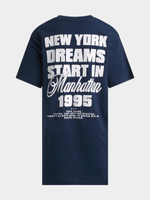 Unleash your casual chic style with our Jet navy graphic print T-shirt dress. Crafted from soft single jersey material, this dress is perfect for any occasion. Embrace the trendy graphic design and enjoy the comfort of this versatile piece that's easy to dress up or down. Stand out effortlessly!