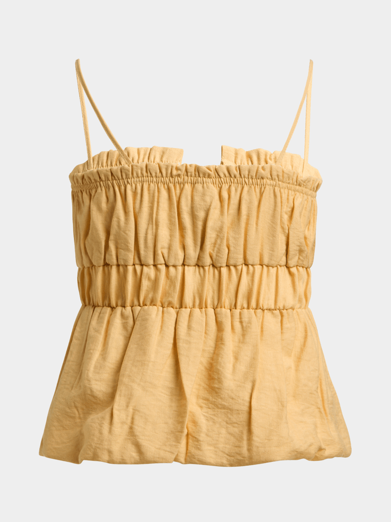 Stay on-trend with our jet yellow front tie ruched top. Made of comfy cotton, this piece is perfect for any occasion.