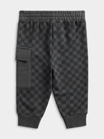 Introducing Jet toddler boys charcoal checkerboard cargo active pants! Made with cozy fleece material for all-day comfort. Features a stylish checkerboard design and functional cargo pockets.