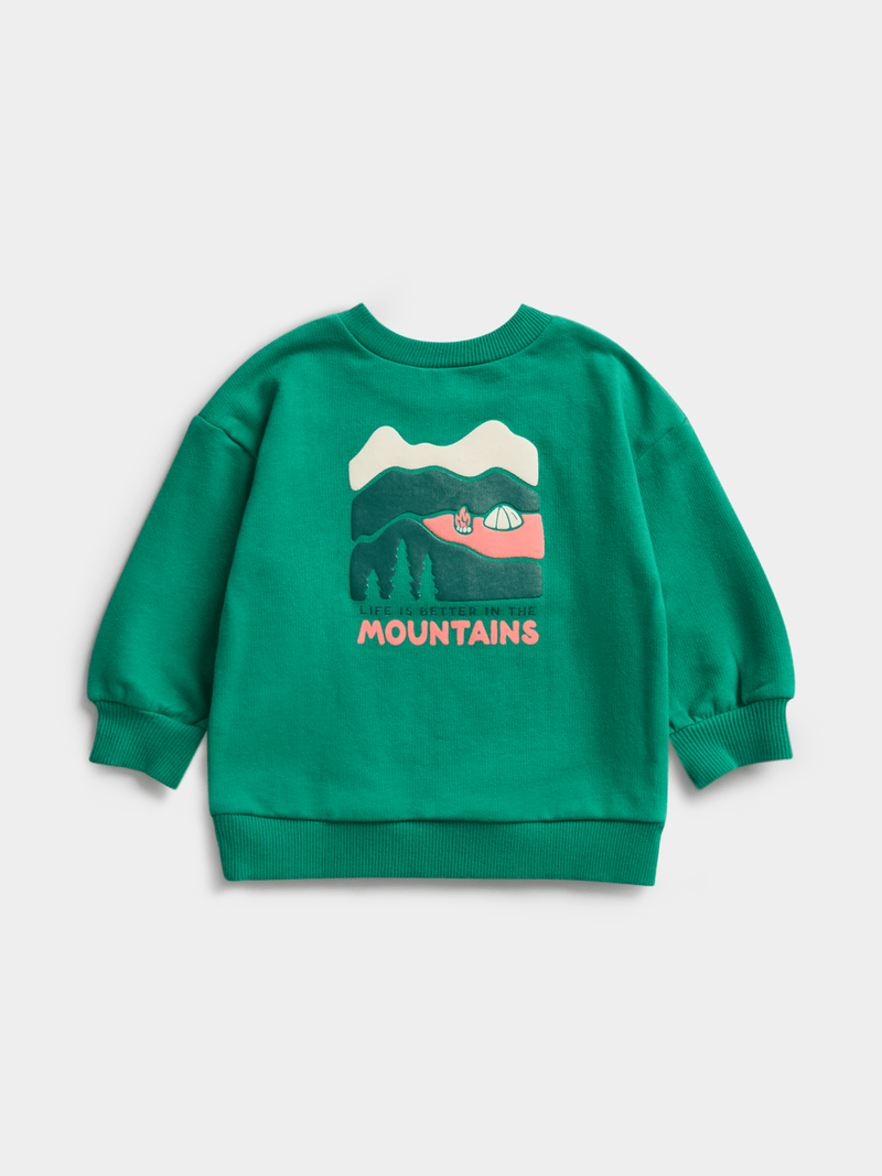 Introducing the Jet Toddler Green Adventures Back Print Top! Made from cozy fleece material, this top is perfect for little ones on the go. Featuring a fun back print, it's ideal for adventures.