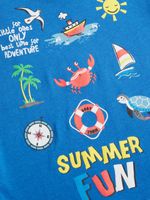 Introducing the Jet Blue Dino T-shirt for toddlers! Made from comfy single jersey material. Features a cute dino design that kids will love. Perfect for playtime or casual outings.