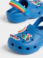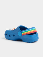 The Jet Toddler Boys Blue Rainbow Strap Clog is the perfect choice for little feet on the go! Made with durable EVA material, these clogs feature a fun rainbow strap for easy on and off.