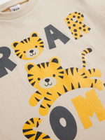 Introducing the Jet Toddler Boys Cream Roarsome Tiger T-Shirt, perfect for adventurous little ones. Made of soft single jersey material, this fun tee is perfect for playtime. With a cool tiger design on the front, it's sure to be a favorite.