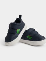 Introducing our Jet Navy Dino Court Sneakers, perfect for little ones who love dinosaurs! Made of durable polyurethane, these sneakers are comfortable for all-day wear. With a cool navy design, they're sure to become a favorite pair in your little one's shoe collection.