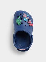 Introducing the Jet Toddler Boys Navy Marvel Garden Shoe featuring a fun design your little one will love. Made from durable PVC material for long-lasting wear.