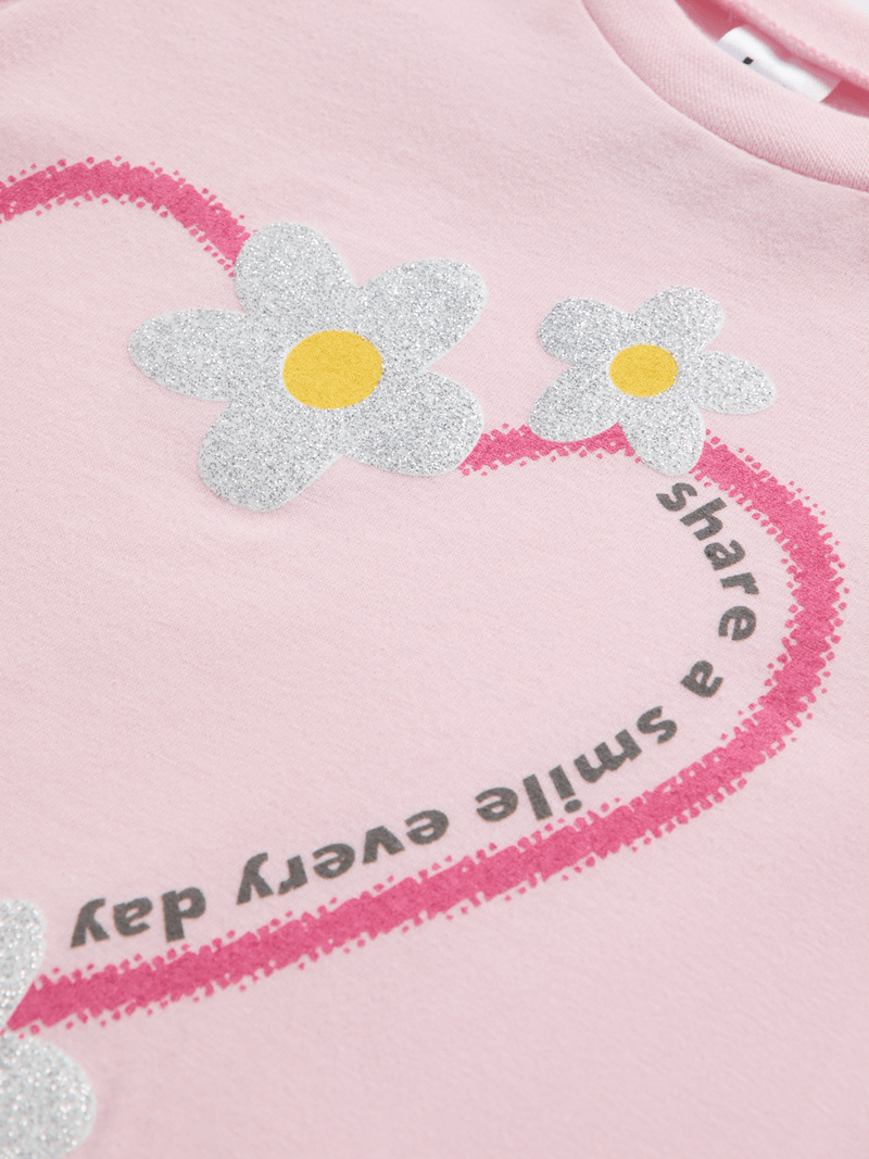 Introducing the Jet Pink Flower Love T-Shirt for toddlers! This adorable tee features a vibrant floral design and is made from soft single jersey material.