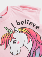 Introducing the Jet Pink Unicorn T-Shirt, a magical addition to any little one's wardrobe. Made from cozy Single Jersey material. This shirt is perfect for everyday wear, with its charming unicorn design. Upgrade your toddler's style with this adorable top.
