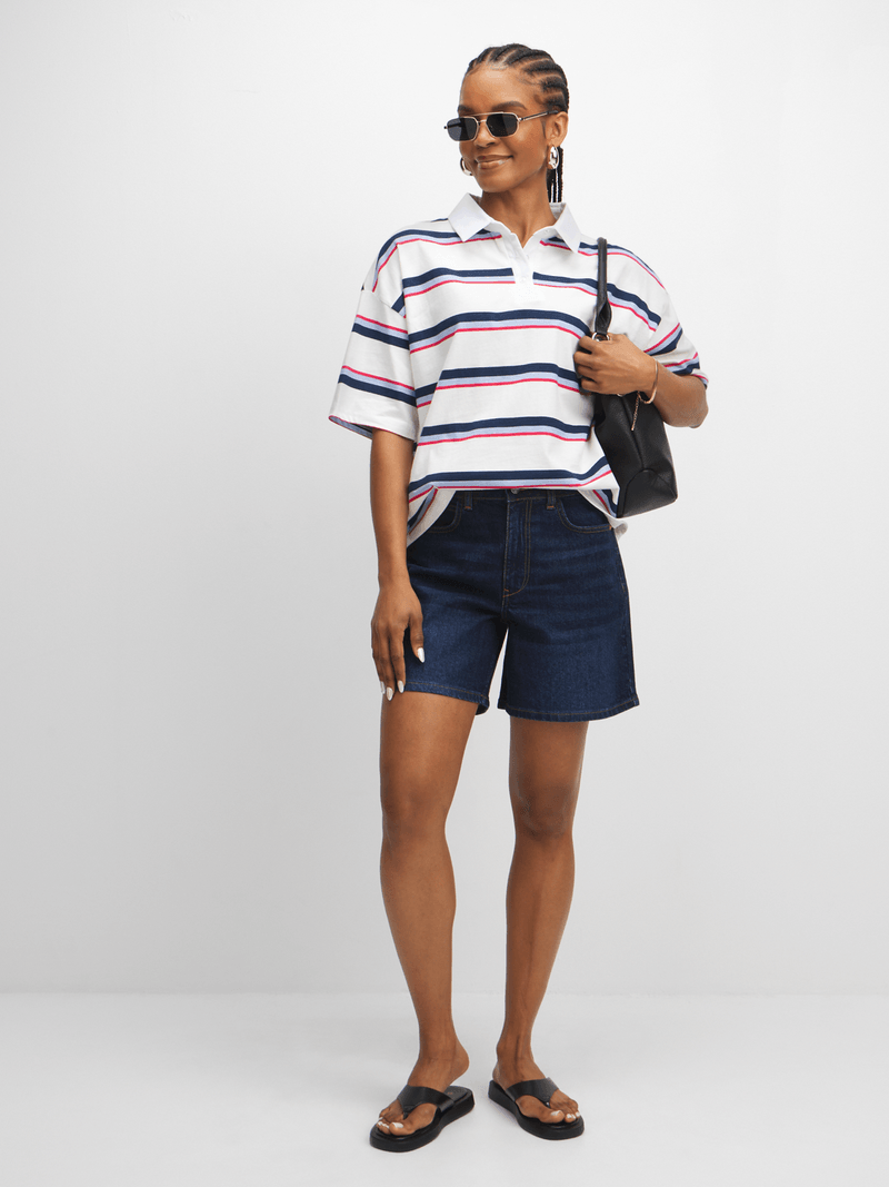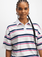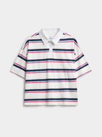 Introducing the Jet Women's White Striped Golf Shirt. Made with 100% cotton for ultimate comfort. This top is perfect for all your active adventures, whether you're hitting the green or running errands. Stay stylish and comfortable with this versatile piece that's easy to mix and match.