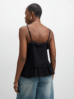 Look chic with the Jet black frill strappy tie top. Made from 85% Rayon and 15% Nylon blend, this locally-made piece is trendy and comfortable.