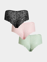 Indulge in comfort and style with our Jet 3 Pack Lace Boyleg panties in blush, sage, and black. Made with delicate lace for a soft and breathable feel.