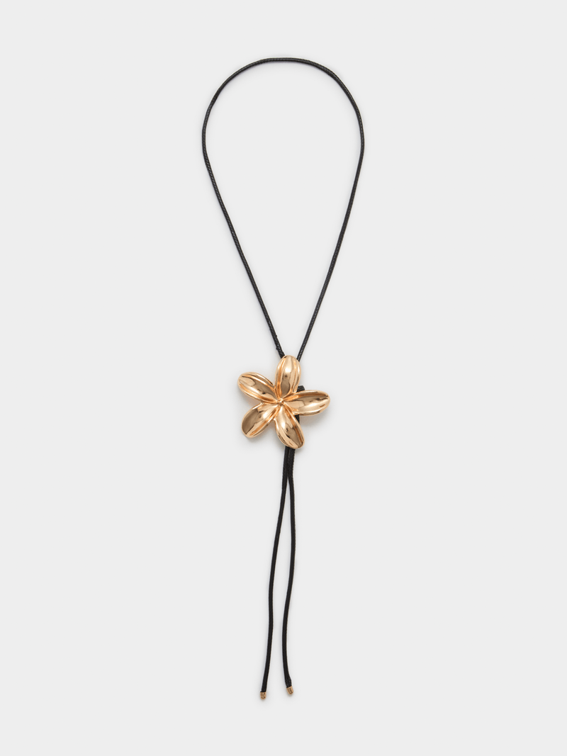 Make a statement with our Jet Black and Gold Flower Necklace! This stunning piece features intricate design and eye-catching details.