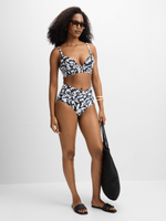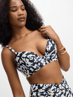 Get ready for beach days with our Jet Black and White Bikini Top! Made from durable polyester, this stylish top features a fun print that'll make a splash.