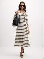 Experience effortless style with the Jet Black and White Crochet Long Sleeve Maxi Dress. Made from a blend of 79% polyester and 21% cotton, this dress is both comfortable and chic.