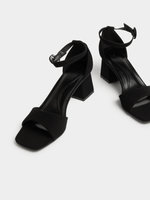 Introducing Jet's Black Basic Block Heel Sandal - a versatile wardrobe staple for casual or dressy occasions. Crafted with soft nubuck material for comfort.