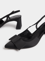 Introducing Jet's sleek black bow heels, a versatile addition to your shoe collection. These stylish heels feature a classic bow detail for a touch of elegance. Made for comfort with a cushioned insole and sturdy heel for all-day wear.