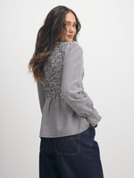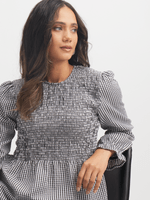 Stay cool and stylish in this jet black check seersucker top. Made from 100% polyester, it's comfortable and easy to care for. With a relaxed fit and long sleeves, it's perfect for any casual occasion.