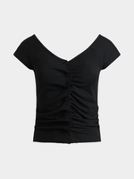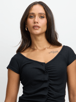 Elevate your wardrobe with this Jet Women's Cinched Button Detail Top. Made from 100% polyester, this top features a stylish cinched waist and button detailing for a trendy look.