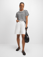 Stay effortlessly stylish with the Jet Black/Cream Stripe T-shirt. Made from 100% cotton for a soft and comfortable feel. Designed with a classic black and cream stripe pattern to elevate any casual outfit. This tee is perfect for everyday wear and is easy to pair with your favorite bottoms. Always look on-trend with this versatile piece.