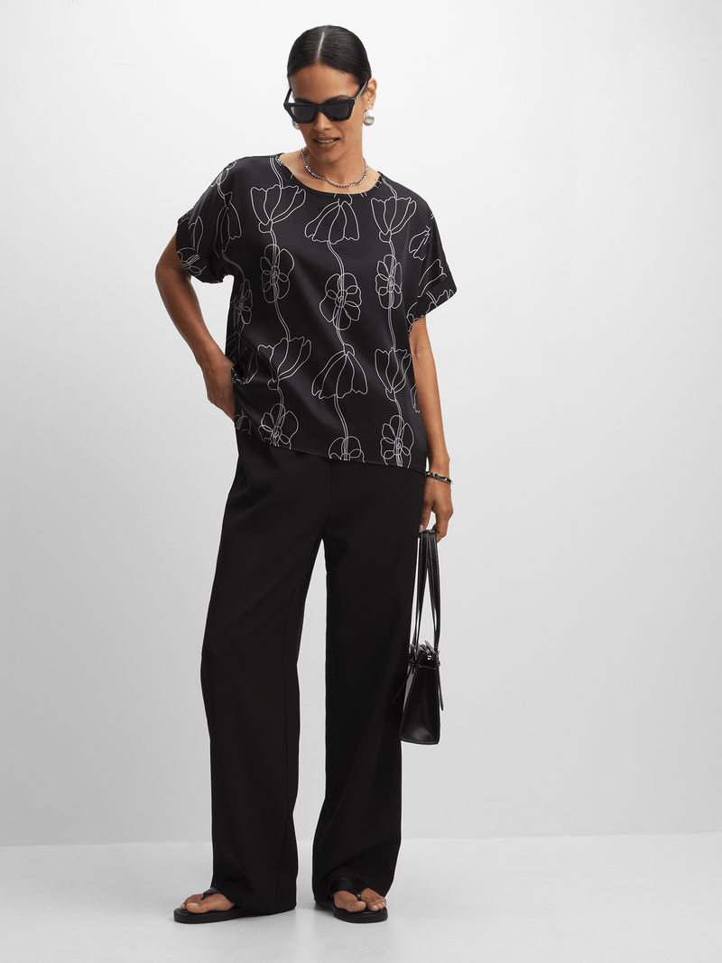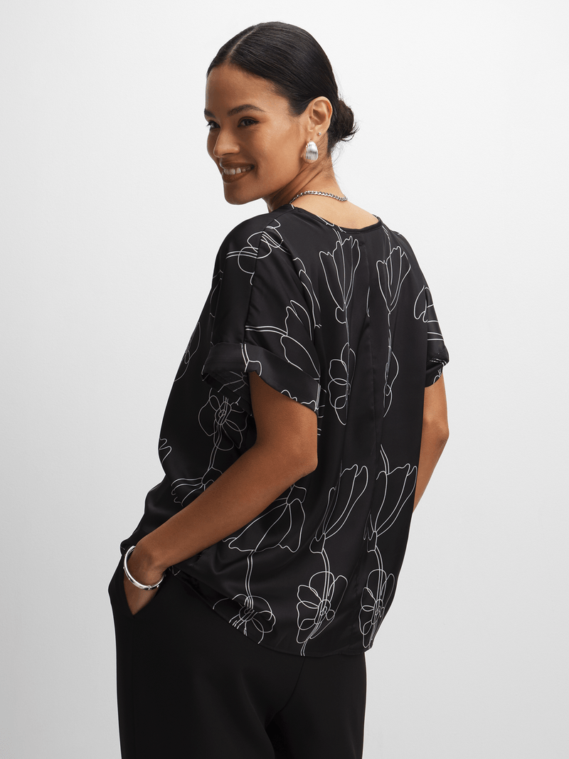 Introducing the Jet Black Fluid Satin Blouse, a versatile addition to your wardrobe. Made from 100% polyester, this blouse offers a luxurious feel and a flattering fit. Perfect for any occasion, this blouse is easy to style and comfortable to wear. Enjoy the stylish look with the Jet Black Fluid Satin Blouse.