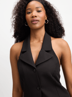 Elevate your style with the Jet Women's Black Halterneck Waistcoat. Made with a blend of 95% polyester and 5% spandex for a comfortable fit. This waistcoat is designed to make you stand out and is perfect for any occasion. Don't miss out on adding this versatile piece to your wardrobe.