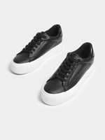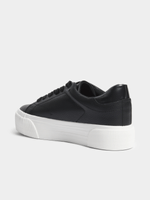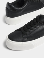 Step up your style game with these Jet black lace-up platform sneakers. Made for comfort and durability, these sneakers are perfect for all-day wear. The lace-up design ensures a secure fit, while the platform sole adds a trendy touch. With these sneakers, you'll be ready to hit the streets in style.