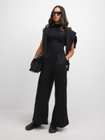 Step up your loungewear game with our Jet Black Luxe Wide Leg Jogger Pants. Made with a luxurious blend of polyester, rayon, and spandex for ultimate comfort. These joggers are designed for everyday wear with a relaxed fit and wide-leg style. Versatile enough for any occasion. Comfort meets style in these must-have pants.