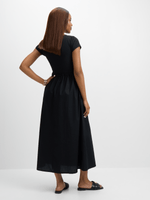 Elevate your wardrobe with the Jet Black Pop Rib Combo Maxi Dress. Made from 100% cotton, this dress offers comfort and style in one. Versatile and chic, it is perfect for any occasion.