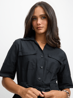 Introducing our comfy Jet Black Poplin Cargo Maxi Dress. Made from 100% Cotton for a breathable, relaxed fit. This dress features practical cargo pockets and a versatile black hue.