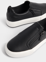 Step up your shoe game with our stylish slip-on platform sneakers. These sleek black shoes feature a comfortable design and trendy platform sole. Perfect for everyday wear, these sneakers will elevate any outfit. Treat yourself to the perfect blend of fashion and comfort.