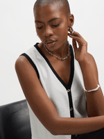 Elevate your style with the Jet Black/White Contrast Waistcoat. This knit waistcoat is perfect for adding a touch of sophistication to any outfit. Enjoy the comfort and versatility of this stylish piece, designed for easy wear and timeless appeal.