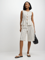 Get summer-ready with the Jet Black White Stripe Linen Shorts! Made with a blend of linen, polyester, and rayon, these shorts are lightweight and breathable. The classic black and white stripes add a stylish touch to your outfit.