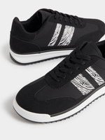 Step out in style with Jet's Black Zebra Retro Sneakers. Made with high-quality polyurethane materials, these trendy shoes feature a unique zebra print design. Perfect for everyday wear, these sneakers offer comfort and style in one. Don't miss out on adding these statement shoes to your collection.