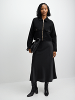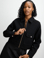 Stay stylish and warm with the Jet Black Zip Pocket Melton Jacket. Made from 100% polyester for maximum comfort. Featuring convenient zip pockets for essentials. A versatile addition to any wardrobe. Perfect for chilly days.
