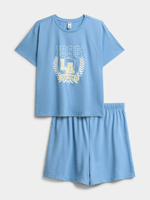 Unwind in style with our Jet Blue 1995 LA Short PJ Set. Made from a soft cotton blend for ultimate comfort.