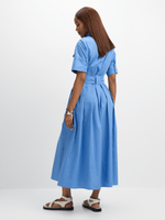 Introducing the Jet Blue Cargo Pocket Poplin Maxi Dress, crafted from 100% cotton for ultimate comfort. With handy cargo pockets and a stylish maxi length, this dress is perfect for any occasion.